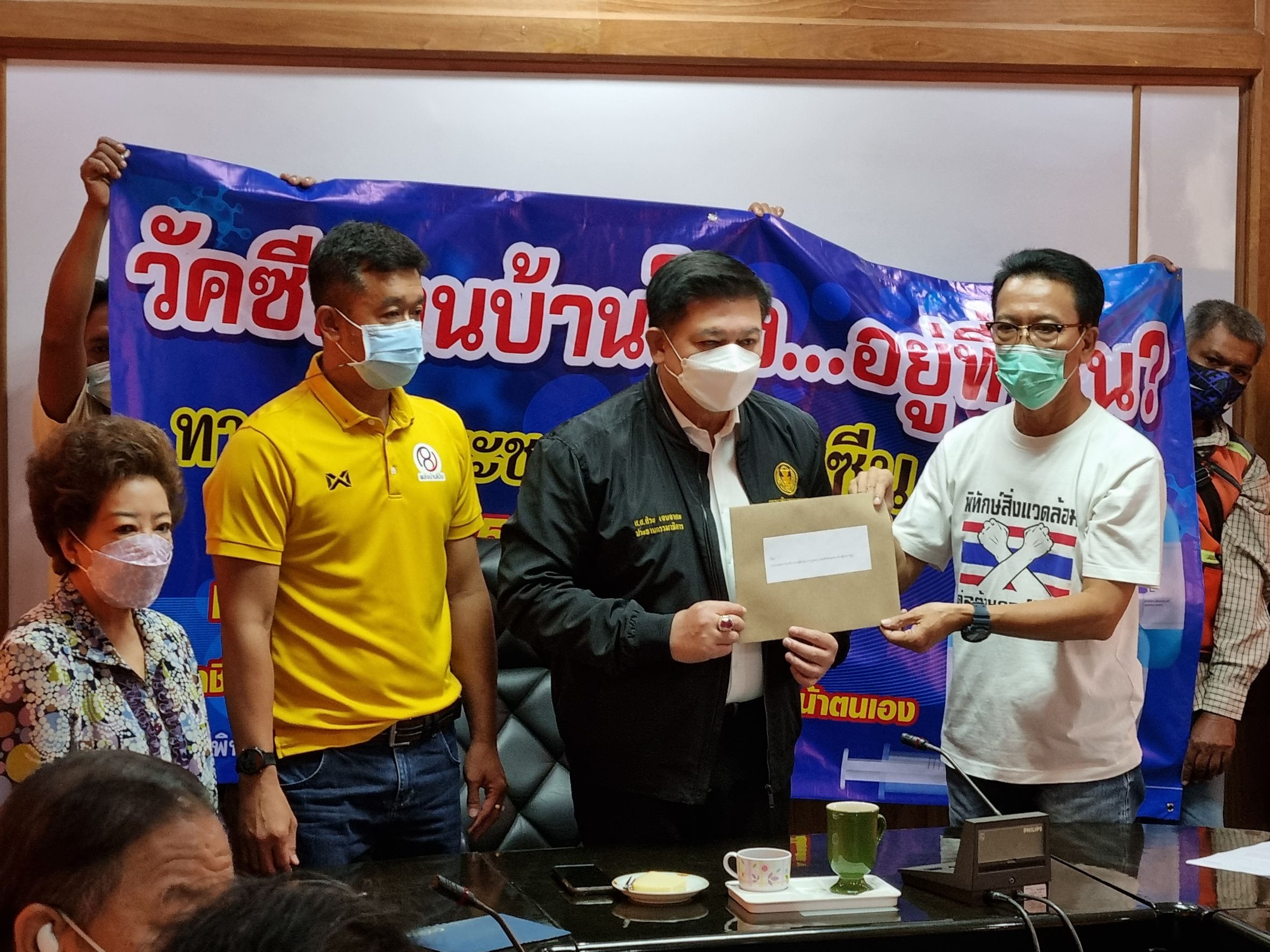 ราชบุรี - ชาวอ.บ้านโป่งยื่นหนังร้องเรียก ชูป้าย"วัคซีนคนบ้านโป่งอยู่ที่ไหน"