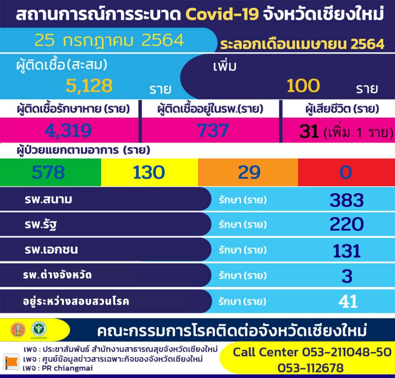 เชียงใหม่พบผู้ติดโควิด100รายชี้ขึ้นนิวไฮ ในรอบเดือนกรกฎาคม