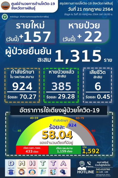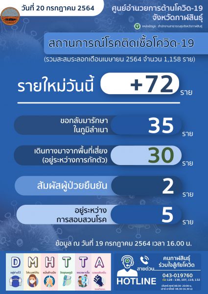 กาฬสินธุ์ผู้ติดโควิดทำนิวไฮวันนี้157ราย