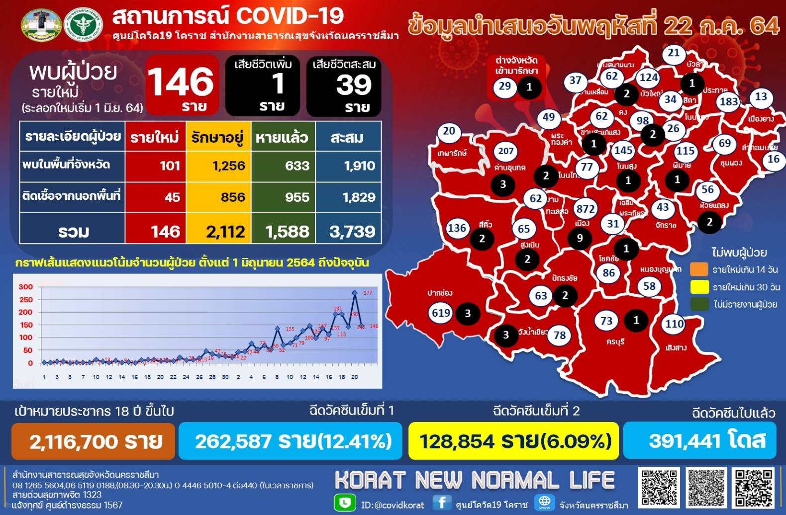 โคราชอาการหนักวันนี้ติดเพิ่มอีก146ราย วิตกคลัสเตอร์ส่อขยายวงเพิ่ม