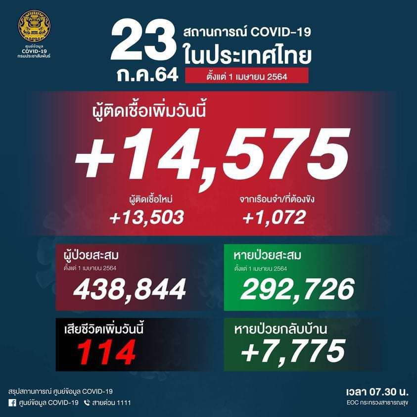 ผู้ติดโควิดไทยขึ้นนิวไฮ14,575ดับ114