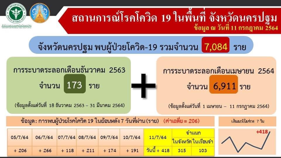 นครปฐมพุ่งแรงผู้ติดเชื้อ418 รายดับ3คน