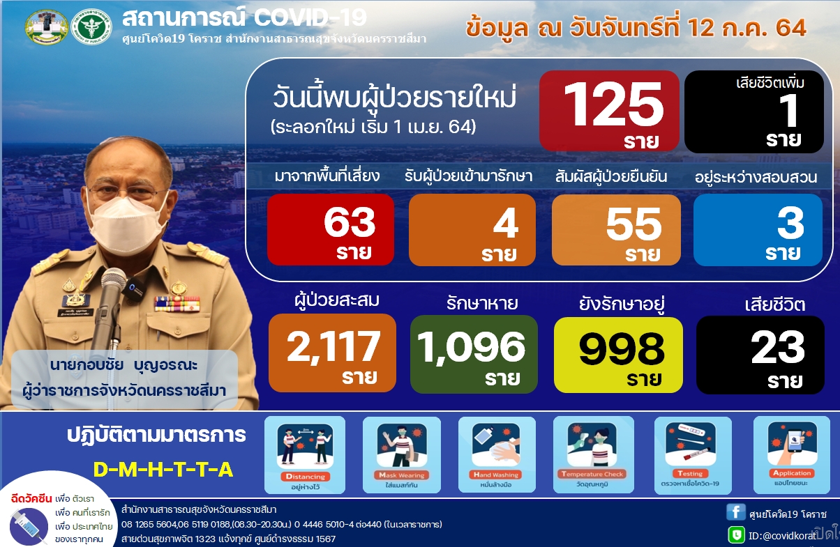 โคราชยอดติดเชื้อพุ่งวันนี้เพิ่มอีก125คน