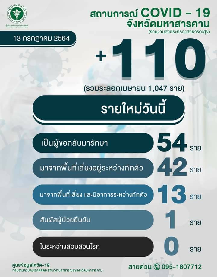 มหาสารคามติดโควิดทะลุพันวันนี้110คน เร่งจัดศูนย์พักคอย80เตียง