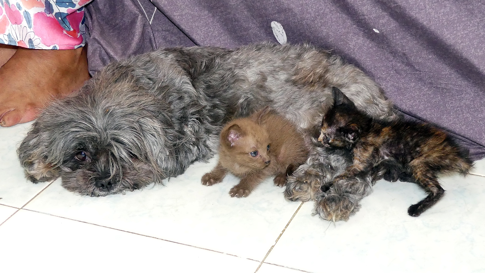 'หมาเลี้ยงลูกแมว'หลังแม่ถูกงูเขมือบ