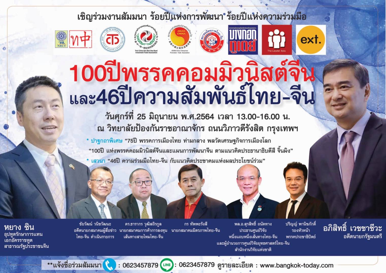 กรุงเทพฯ- 8 องค์กรพันธมิตรจับมือเปิดเวทีถก 100 ปีพรรคคอมมิวนิสต์จีน และ 46 ปีความสัมพันธ์ไทย-จีน “อภิสิ...