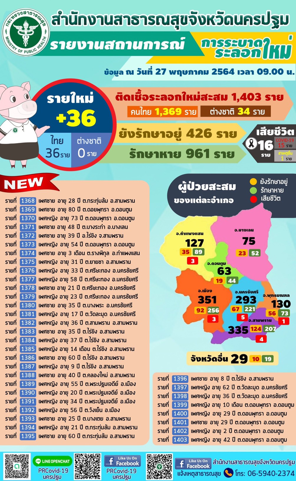 นครปฐม-พบผู้ป่วยโควิดเพิ่มรายวันระบาดระลอกใหม่เพิ่มอีก 36 ราย