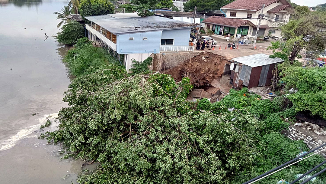ราชบุรี - ฝนตกหนักทำบ้านพัง ตลิ่งทรุด ต้นโพธิ์อายุกว่า 100 ปี โค่นลงแม่น้ำ ที่ถนนท่าเสา ชุมชนมหาธาตุ 19 สมังคี ต.หน้าเมื...