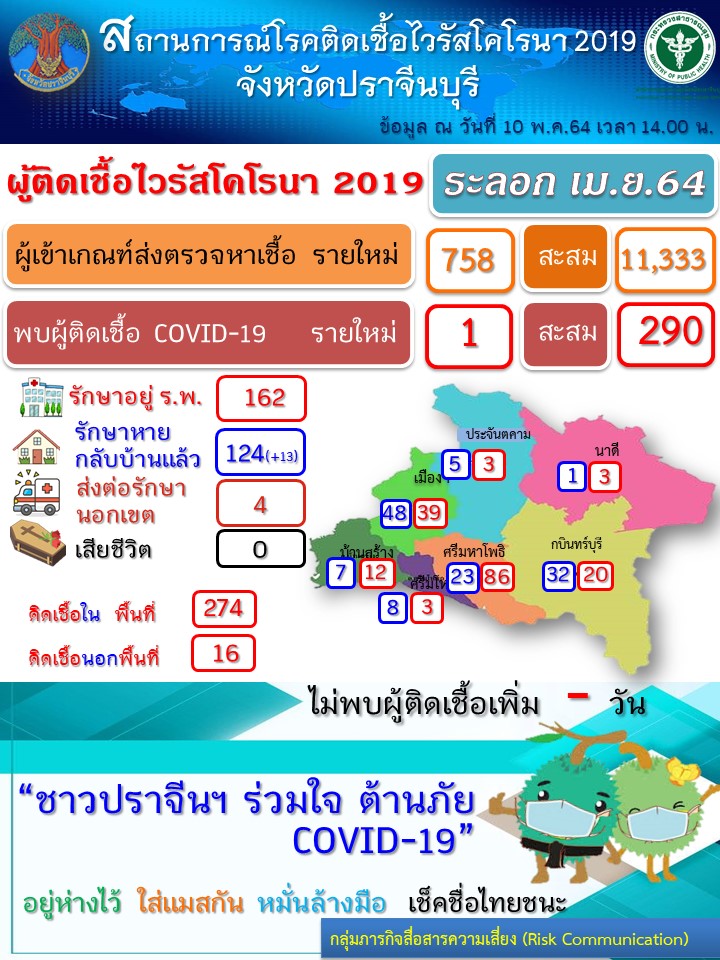 ปราจีนบุรี –เผยตัวเลขโควิด -19 วันนี้ติดเพิ่มอีก 1 ราย สะสมรวม 290 ราย Timeline แจ...