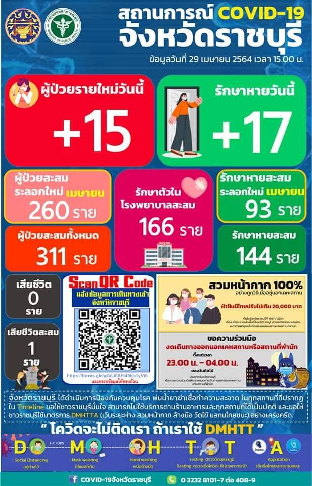 ราชบุรียังไม่นิ่งพบผู้ติดเชื้อเพิ่มอีก15ราย