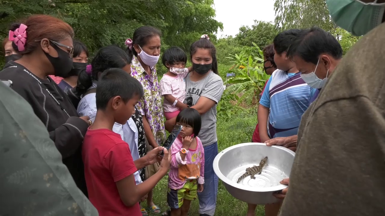 นครราชสีมา-ชาวบ้านอำเภอครบุรีโคราชกว่า 100 คนแตกตื่นหลังเด็กมาหาปลาพบจระเข้ชูคอ ลอยอยู่ในคลองน้ำ ก่อนจับลูกได้ 1 ตัวและค...