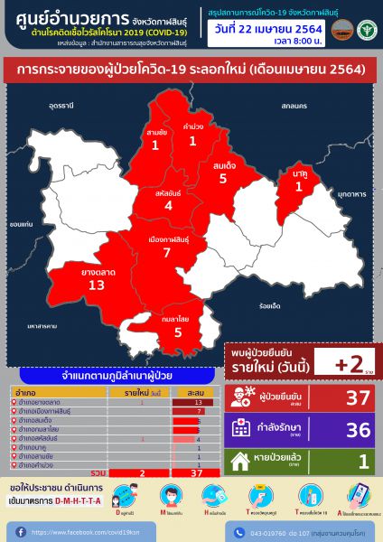 กาฬสินธุ์-พบผู้ติดเชื้อโควิด-19 เพิ่มอีก 2 ราย ยอดสะสมพุ่ง 37 ราย ขณะที่สำนักงานสาธารณสุขจังหวัดกาฬสินธุ์ ประกาศให้ประชา...