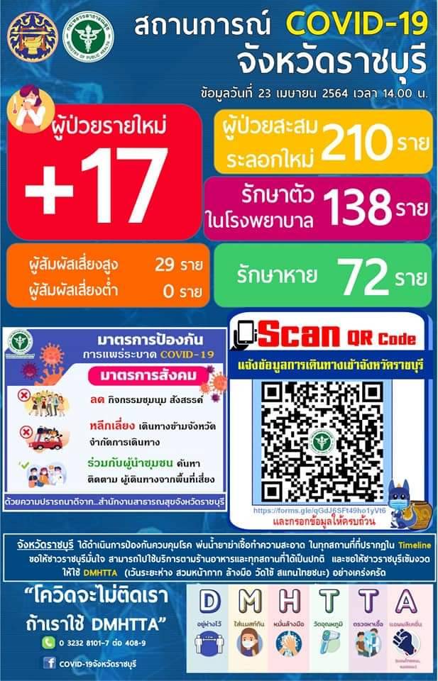 ราชบุรี - ผู้ติดเชื้อเพิ่มขึ้นอย่างต่อเนื่อง ยอดเพิ่ม 17 ราย ยอดรวม 210 ราย