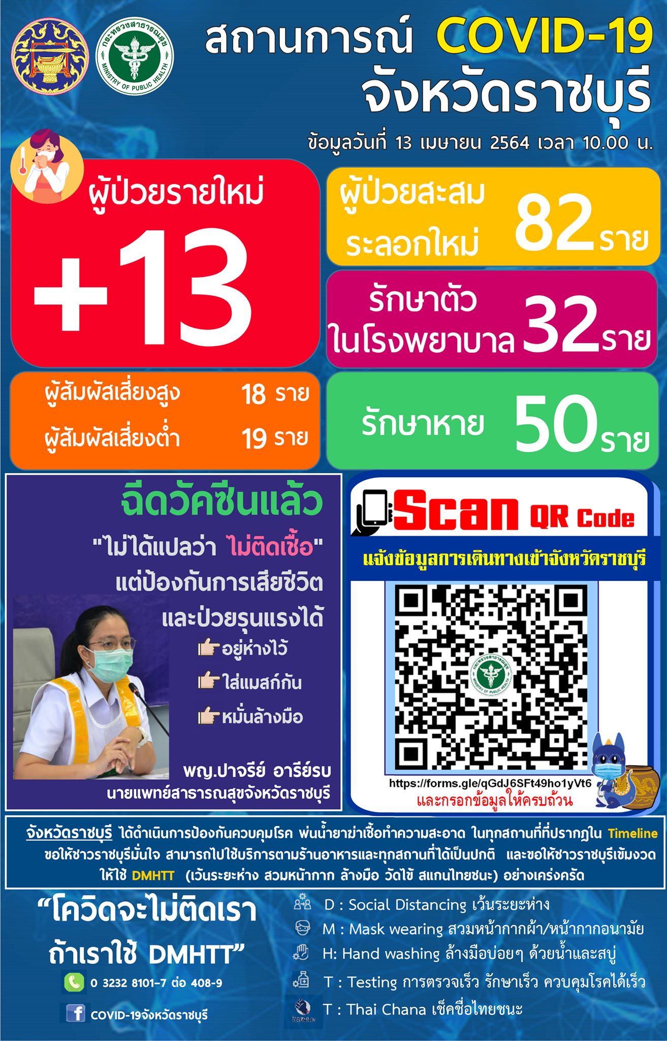 ราชบุรีผู้ติดเชื้อโควิดพุ่งวันเดียว13ราย