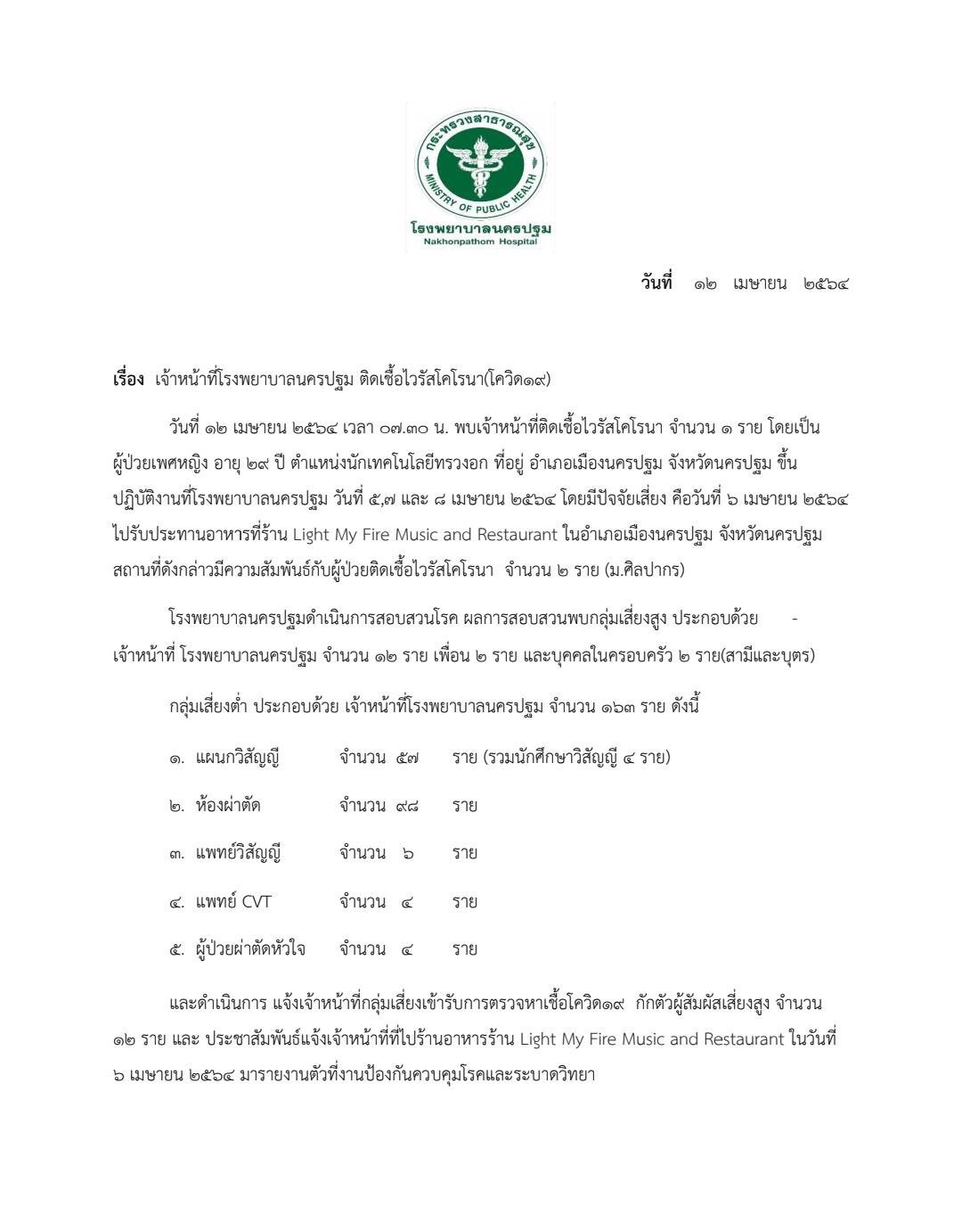 นครปฐม-เผยบุคคลากรทางการแพทย์ โรงพยาบาลนครปฐม เสี่ยงติดเชื้อไวรัสโควิด-19 หลายสิบราย โดยสาเหตุมาจากสถานบันเทิงในตัวเมือง...
