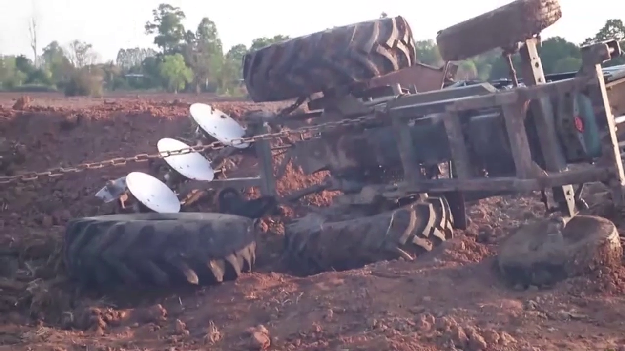 ช้างป่าเขาใหญ่เกเรดันรถไถชาวไร่คว่ำ