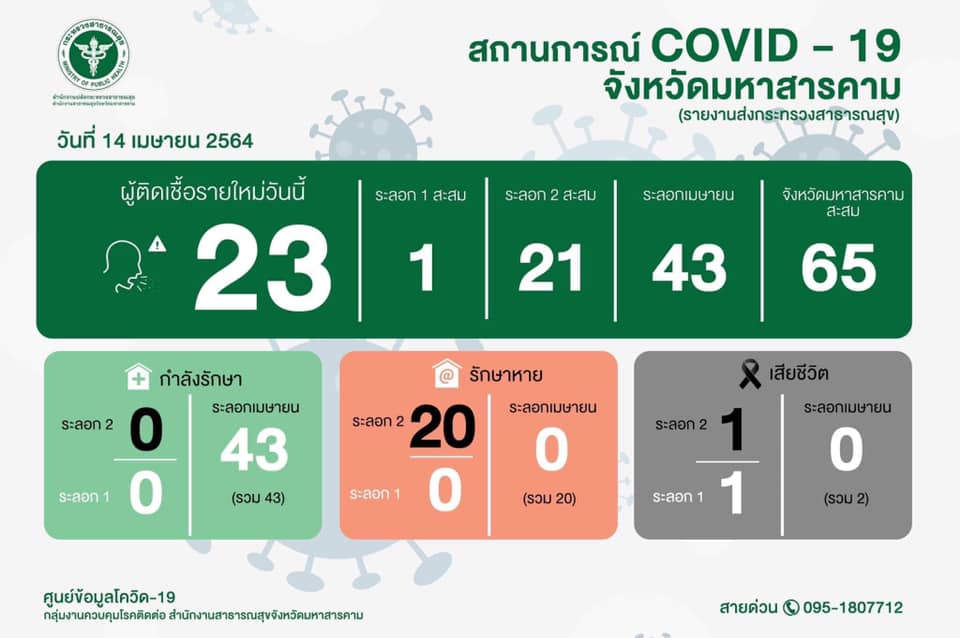 มหาสารคามคิดโควิดวันเดียวพุ่ง23ราย