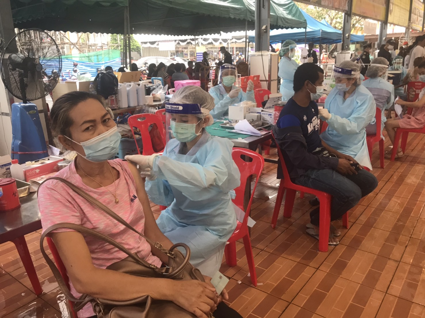 กรุงเทพฯ-กทม.เตือนกลุ่มเสี่ยงโควิด-19 ย่านตลาดบางแครับการฉีดวัคซีนโควิด-19 เข้มที่ 2 ณ วัดนิมมานรดี เขตภาษีเจริญ