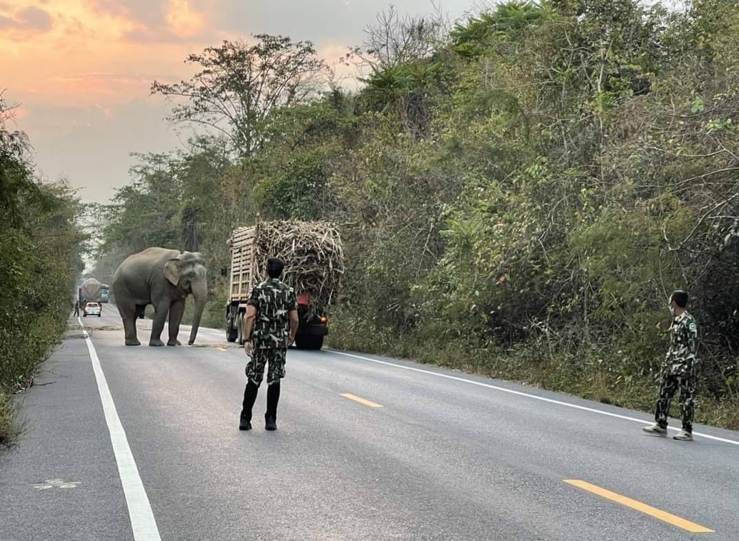 เขตรักษาฯป่าฤาไนเตือนผู้ใช้ถนนผ่านป่า ระวัง!!ถูกช้างป่าปล้นพืชผลการเกษตร