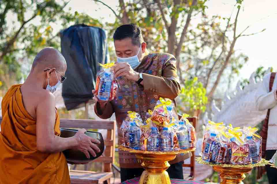 ผู้ว่าฯกาฬสินธุ์นำทำบุญบนยอดเขาภูสิงห์ ตักบาตรอาหารแห้ง-ผ้าป่าทุนการศึกษา