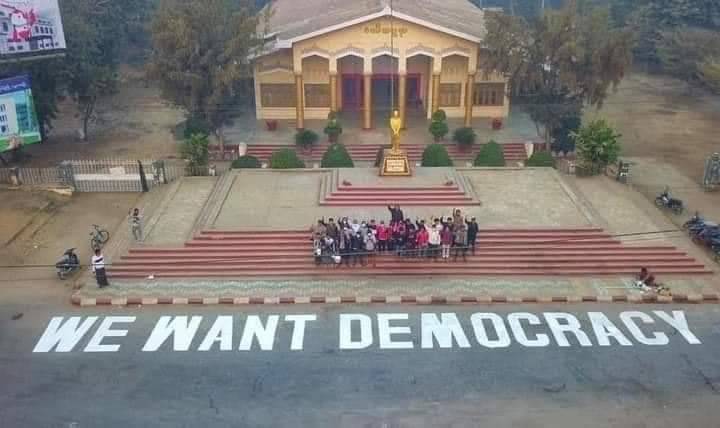 เชียงราย- ชาวพม่าใน จ.ท่าขี้เหล็ก สหภาพเมียนมา ตรงข้าม อ.แม่สาย จ.เชียงราย เดินหน้าประท้วงรัฐบาล ย่างเข้าสัปดาห์ที...