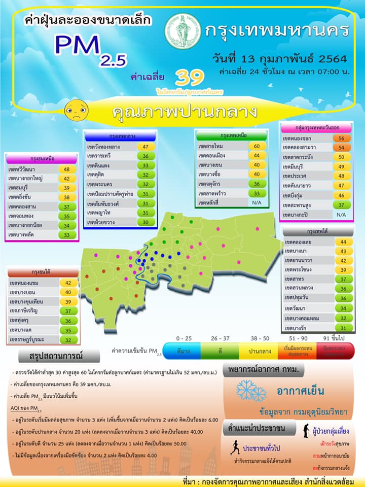 กทม.วันนี้อากาศดีมีPM2.5เกินแค่2พื้นที่
