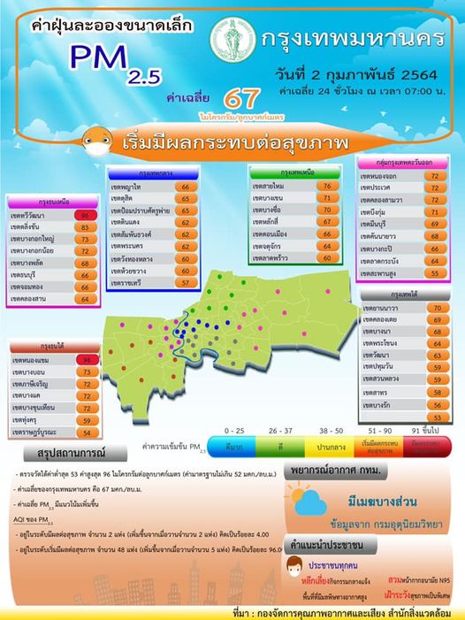 กทม.วันนี้อากาศไม่ดีPM2.5เกิน68พื้นที่