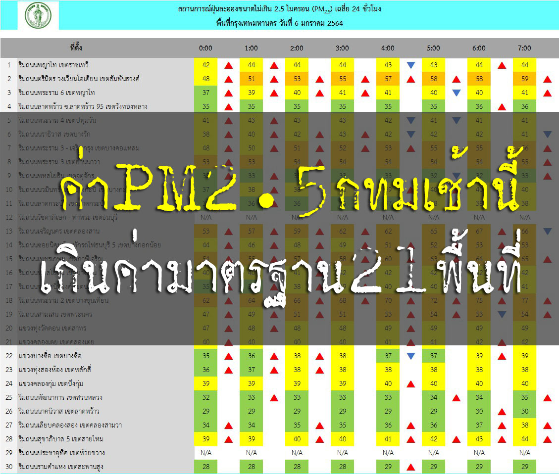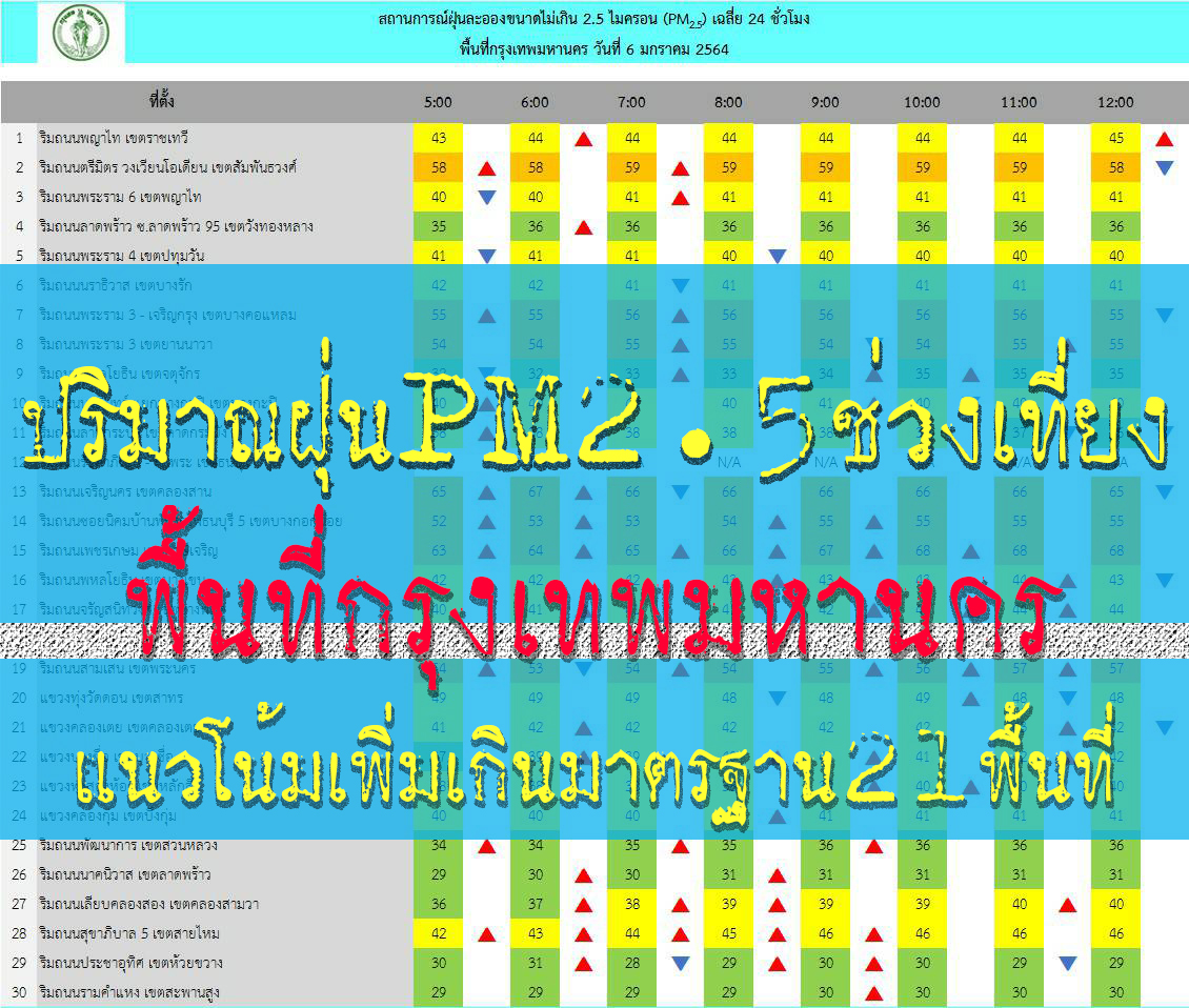 กทม.เช้านี้อากาศไม่ดีPM2.5เกิน21พื้นที่