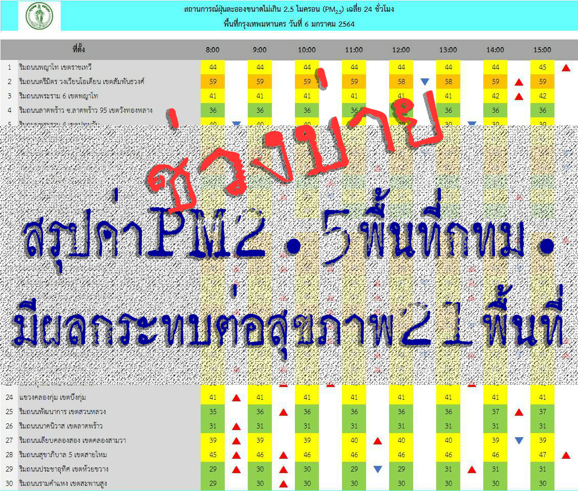 กรุงเทพฯ-ศูนย์ประสานงานและแก้ไขปัญหามลพิษทางอากาศของกรุงเทพมหานครขอสรุปผลการตรวจวัด PM2.5 เวลา 13.00 - 15.00 น. (3 ชั่วโ...