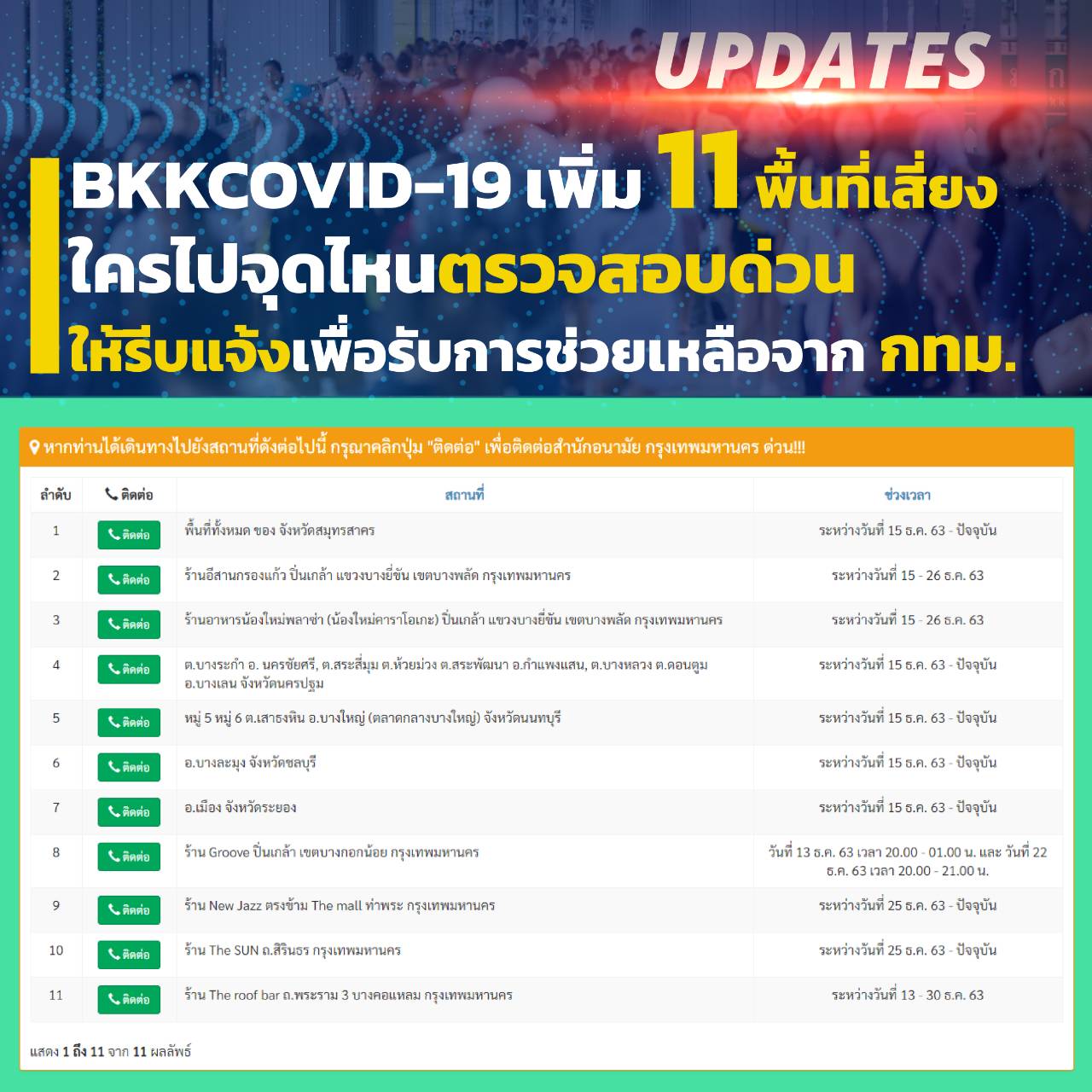 ด่วน!ใครเคยไป11จุดเสี่ยงนี้ให้รีบกักตัว