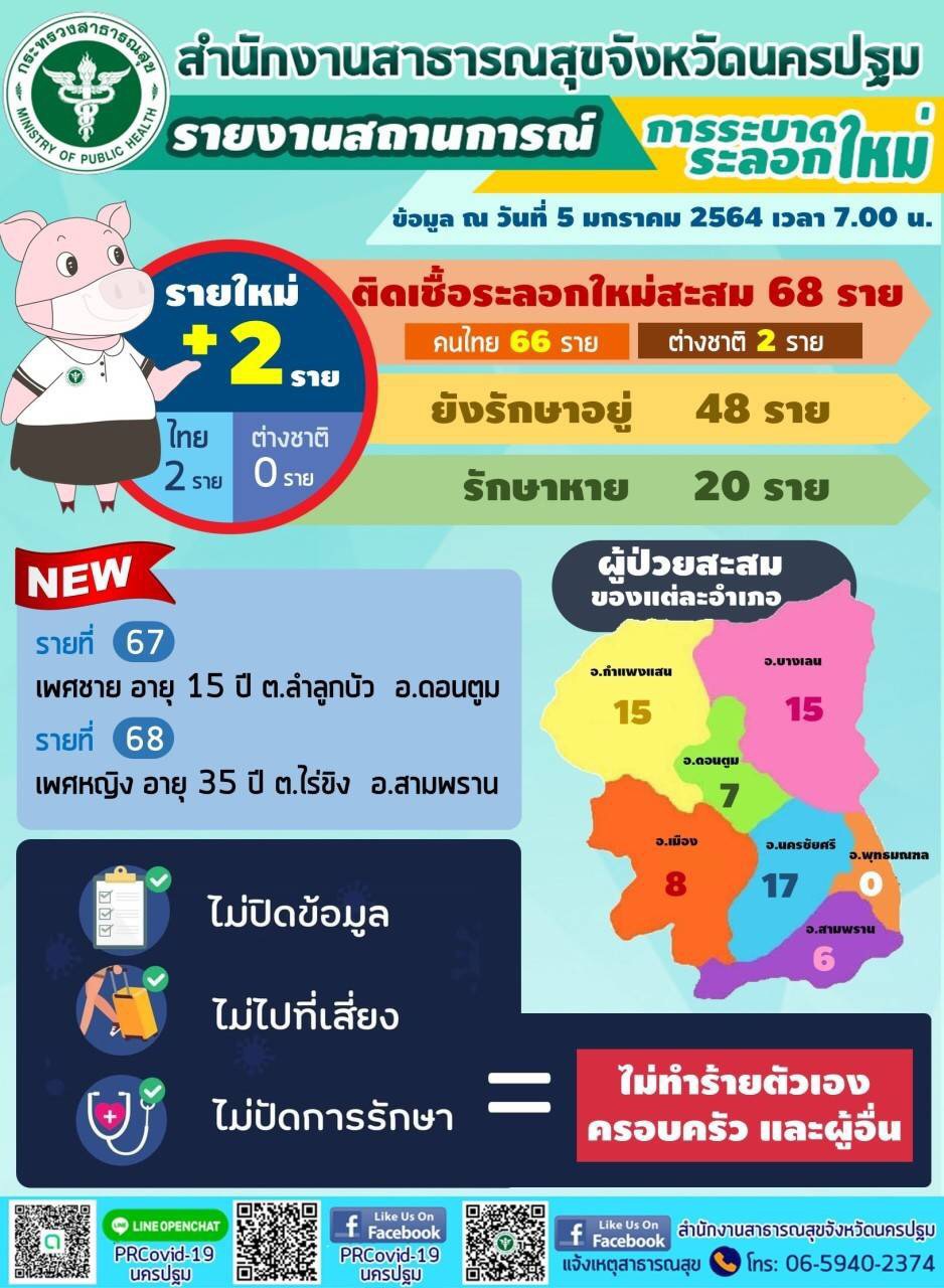 นครปฐมยังไม่หยุดพบผู้ติดเชื้อโควิด-19 วันนี้เพิ่มอีก2รายยอดสะสมรวม68ราย