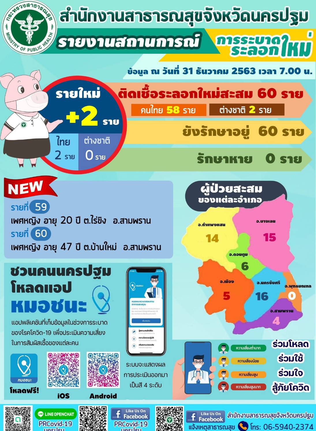 นครปฐมายันผู้ติดเชื้อวันนี้2คนรวม60คน