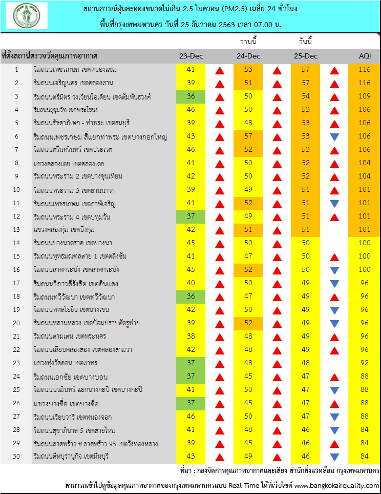 กรุงเทพฯ-ศูนย์ประสานงานและแก้ไขปัญหามลพิษทางอากาศของกรุงเทพมหานคร สรุปผลการตรวจวัด PM2.5 เวลา 10.00 - 12.00 น. (3 ชั่วโม...