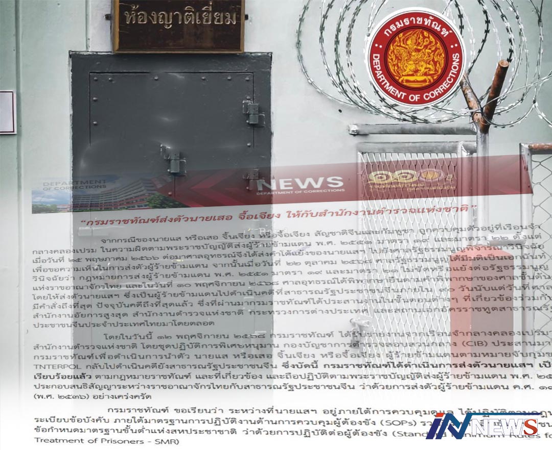 กรมราชทัณฑ์ส่งตัวนายเสอ จื้อเจียงให้ กับสำนักงานตำรวจแห่งชาติ