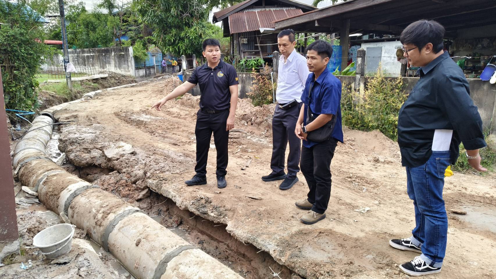 นอภ.เมืองศรีสะเกษสั่งตรวจสอบงานวาง ท่อระบายน้ำขุดทำกำแพงชาวบ้านพัง