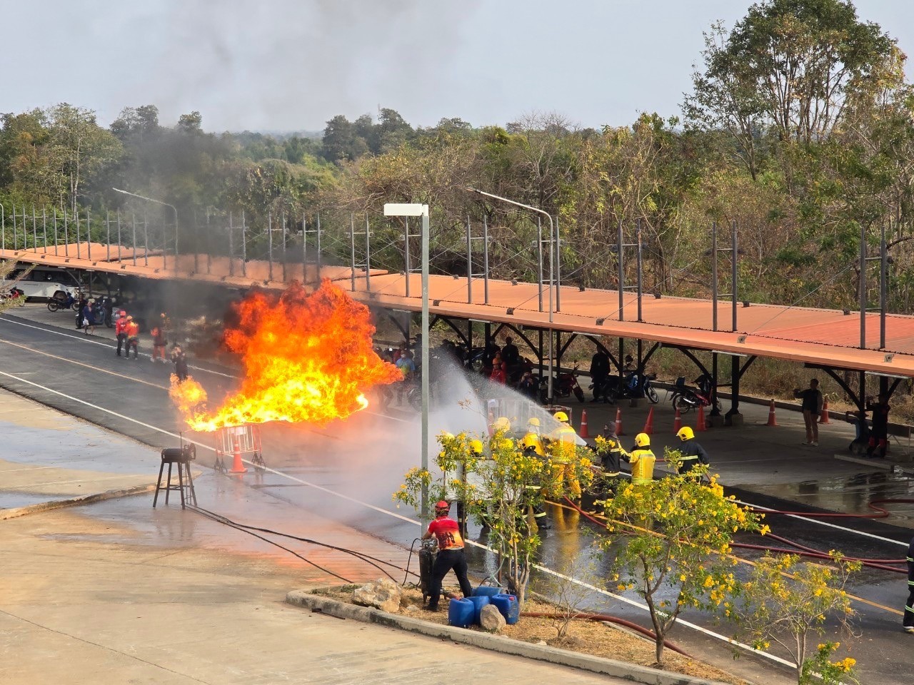 นักศึกษามรภ.ชัยภูมิตกใจหนีไฟอลหม่าน แตกตื่นจนท.ซ้อมแผนป้องกันอัคคีภัย
