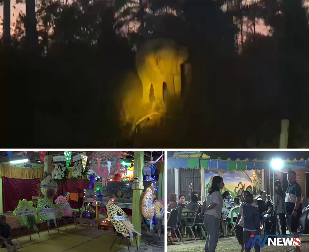 ชาวบ้านนำศพเหยื่อช้างป่ากระทืบตาย หลังเก็บยอดหวายตั้งสวดที่วัดคลองทราย