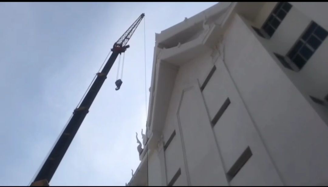หวาดเสียว!ช่างทาสีศาลากลางร้อยเอ็ด ตกจากกระเช้ารถเครนบาดเจ็บสาหัส