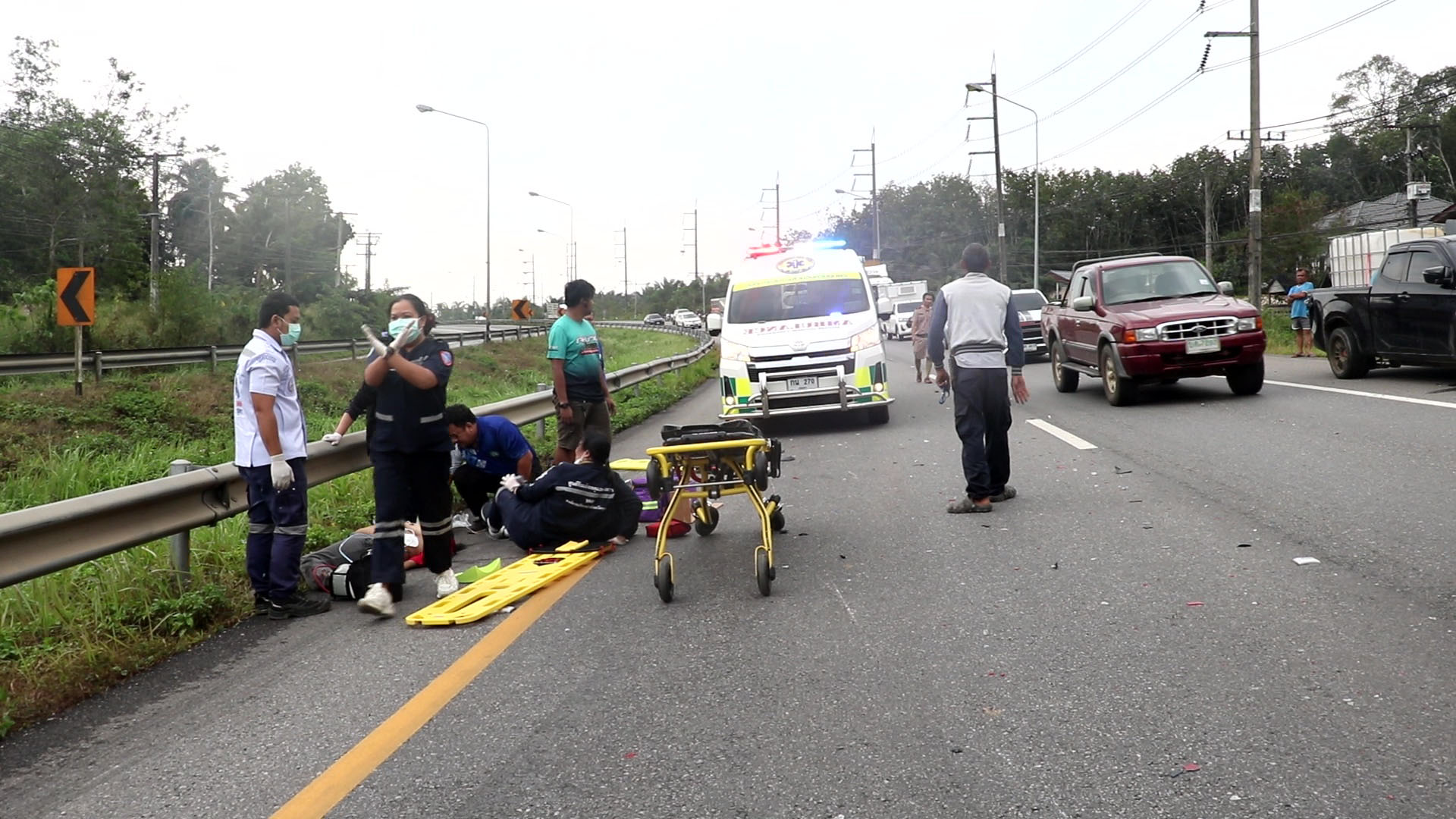 ชุมพร-สลด!แม่ค้าขายยำทะเลวัย 29 ปีขับรถจักรยานยนต์จะไปซื้อไก่ไหว้ตรุษจีนชนท้ายกระบะจอดข้างทางก่อนร่างไถลไปกลางถนนโดยกระบ...