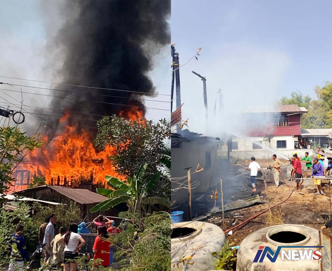 เกิดเหตุไฟไหม้บ้านเรือนปชช.วอดทั้งหลัง 4ชีวิตหนีรอดมาได้หวุดหวิด