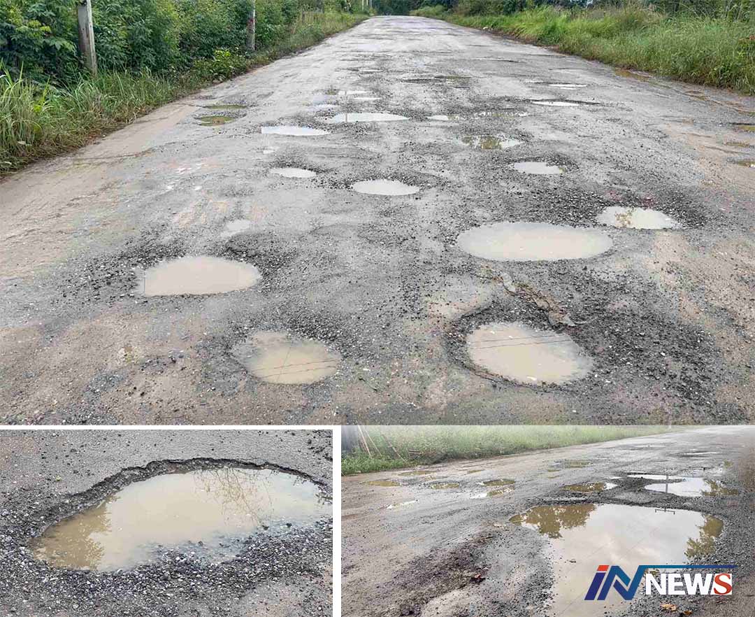 ทุกข์คนหนองบัวฯถนนพังเป็นหลุมเป็นบ่อ 'หนองปลาขาว'ถึง'โนนขมิ้น'สัญจรลำบาก