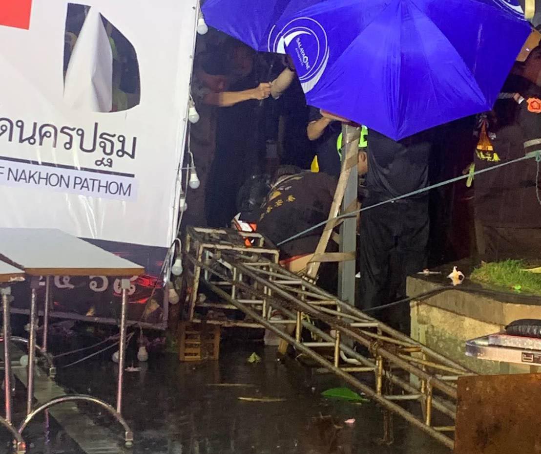 พายุถล่มป้ายงานกาชาดล้มทับผช.ผญบ. เจ็บส่งท้ายงานองค์พระปฐมฯ