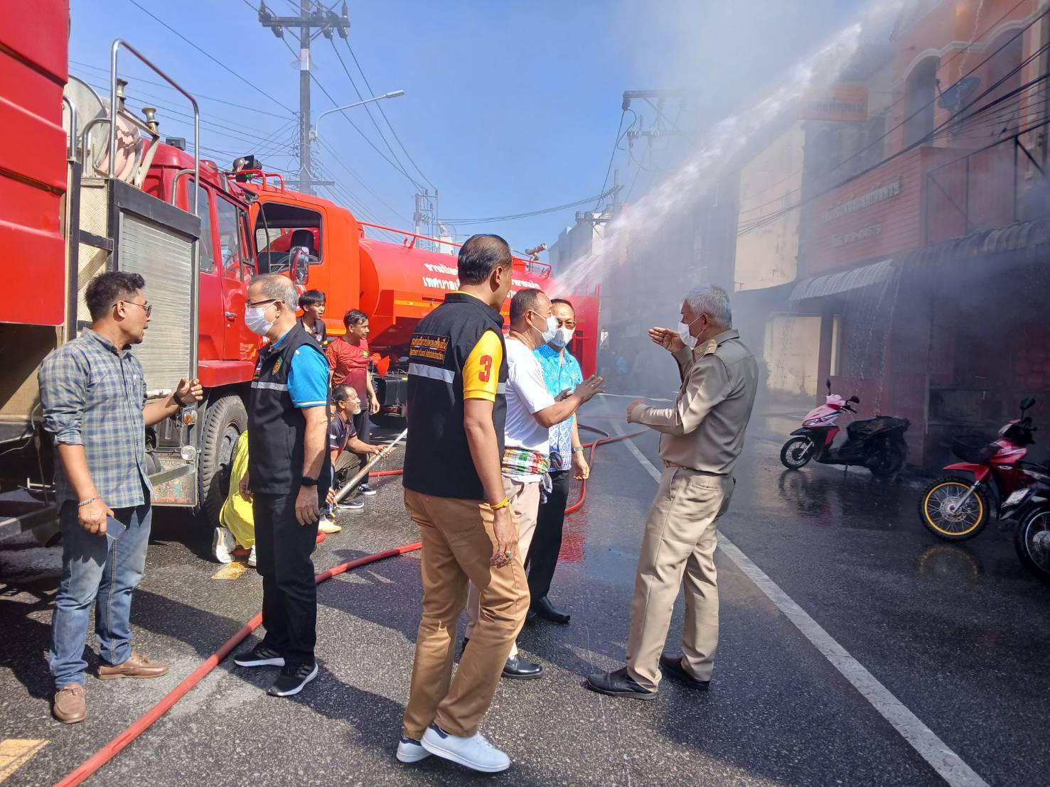 ผู้ว่าพังงารุดสั่งการควบคุมเหตุเพลิงไหม้ ร้านซ่อมรถจยย.กลางเมืองพังงา