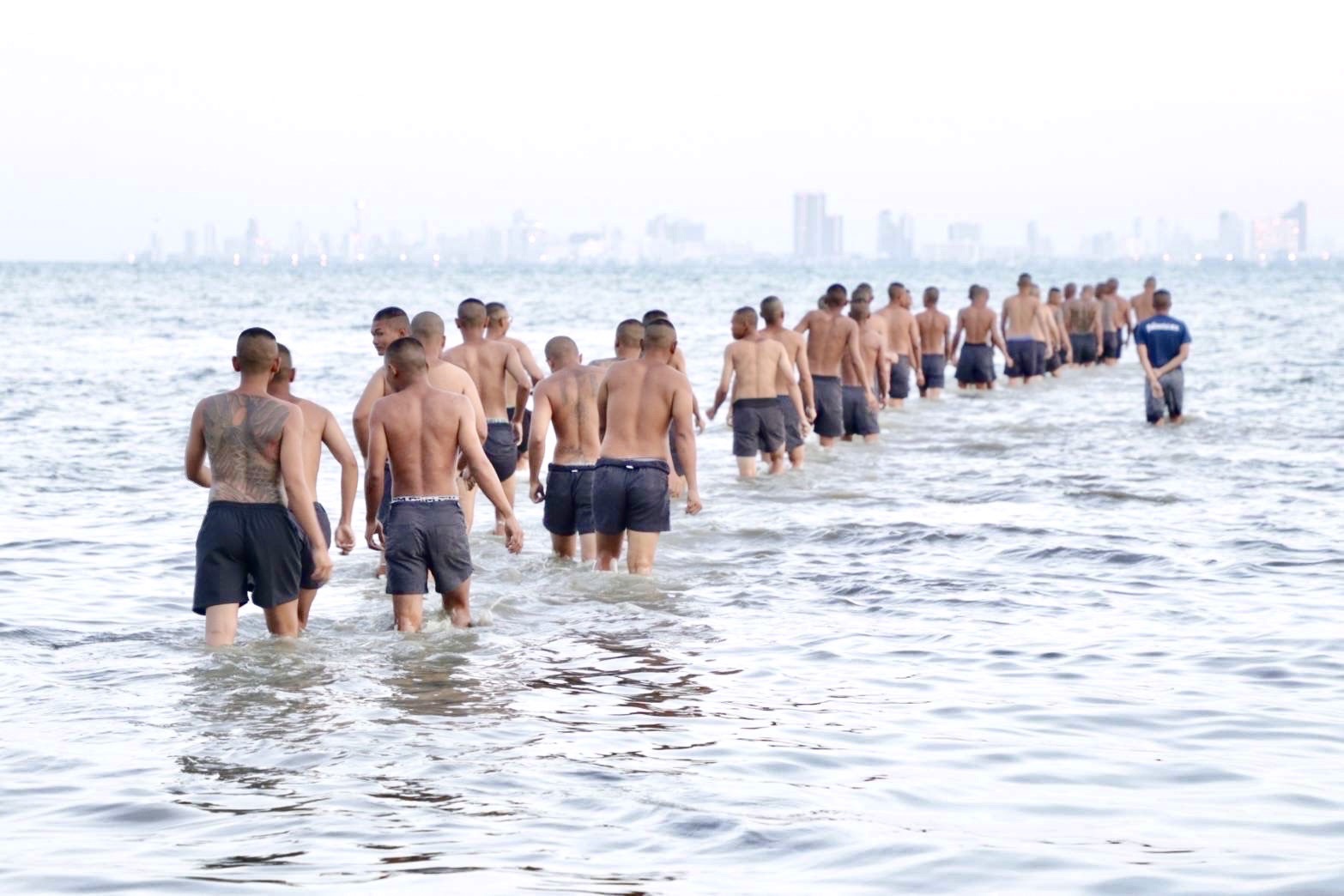 ศูนย์ฝึกทหารใหม่ฯทหารเรือจัดทดสอบ ว่ายน้ำในทะเลให้กับทหารใหม่