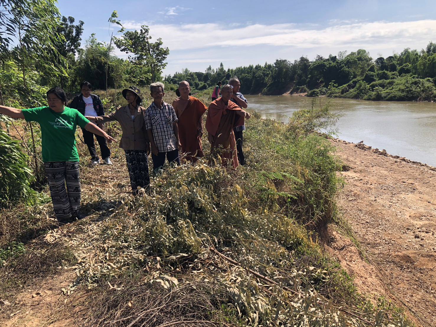 กาฬสินธุ์-พระ-ชาวบ้านในต.ลำชี อ.ฆ้องชัย จ.กาฬสินธุ์ ลุยชี้จุดก่อสร้างเขื่อนป้องกันตลิ่งริมแม่น้ำชี หลังวัดลำชีศรีวนาราม ...