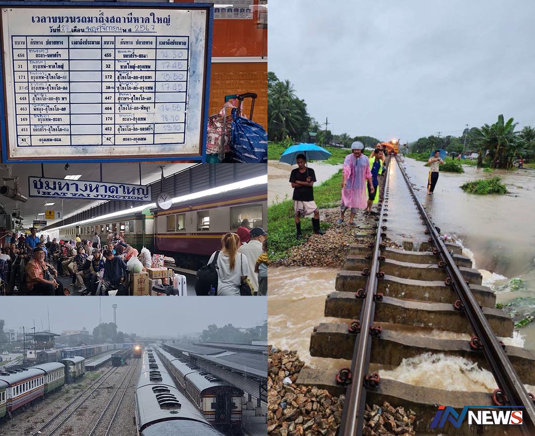 น้ำท่วมกระทบการเดินรถไฟพื้นที่3จว.ใต้ เปิดเดินรถได้แค่สถานีรถไฟหาดใหญ่