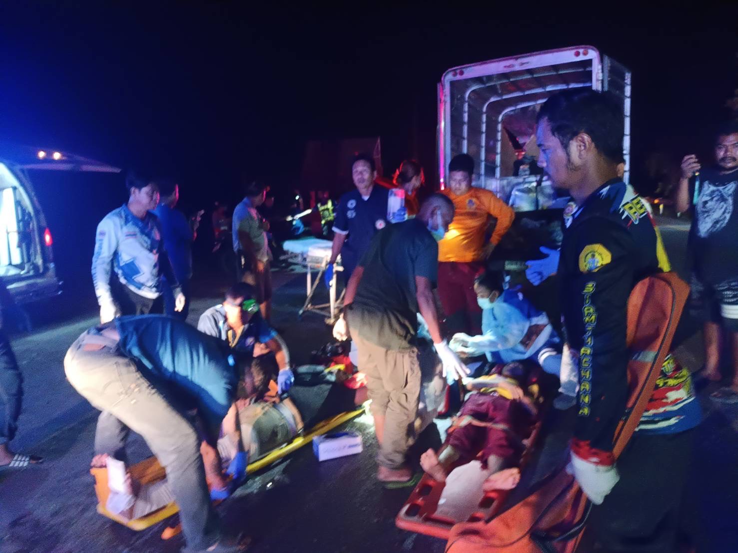 รถตู้ทึบขนแรงงานเถื่อนชนรถพ่วงพังยับ สุดสลดดับคาที่4เจ็บ9วิ่งหนีเข้าป่า2ราย