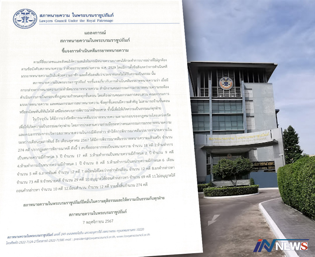 สภาทนายความฯร่อนหนังสือแถลงการณ์ ชี้แจงการดำเนินคดีมรรยาททนายความ