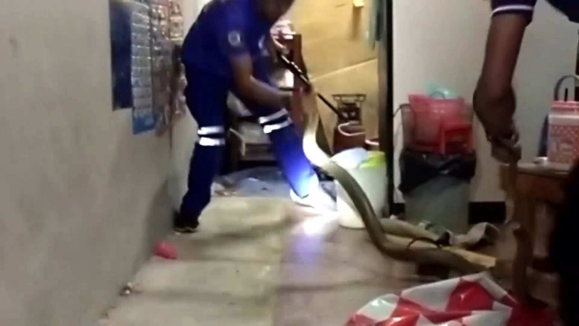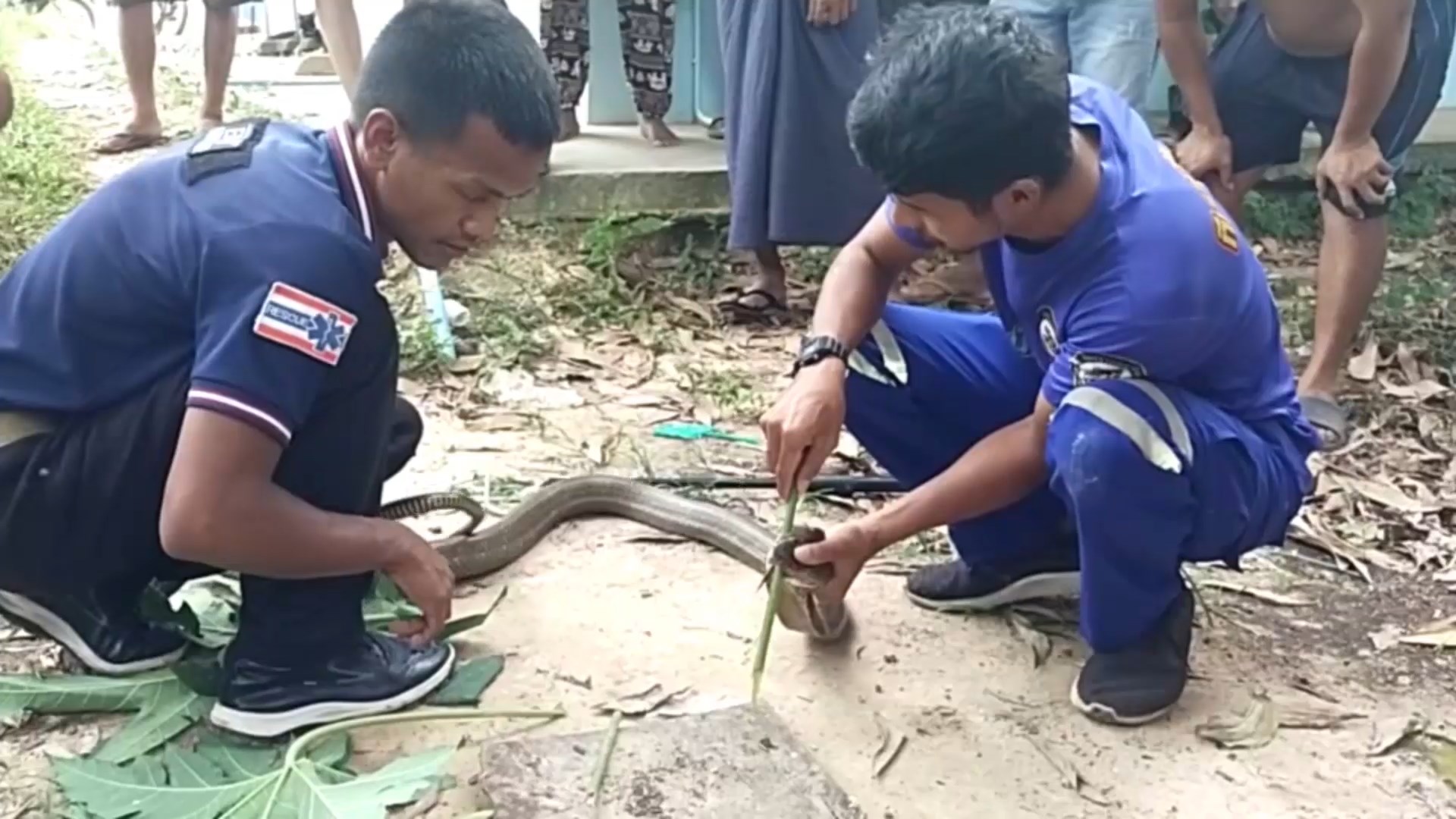 'จงอาง'หิวแวะห้องครัวชาวนาทวีคนแห่ดู ร้อนถึงกู้ภัยตามจับส่งป่าธรรมชาติ