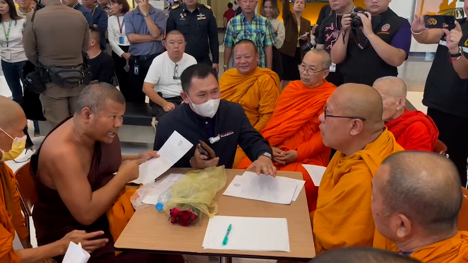 นครปฐม-หลวงพี่น้ำฝน ถือเอกสารเจ้าอาวาสวัดสามชุก ต้นสังกัดพระปีนเสาไฟ แจ้งที่ช่อง 3 ให้กลับวัด ชี้ตั้งสำนักสงฆ์ผิดระเบียบ...